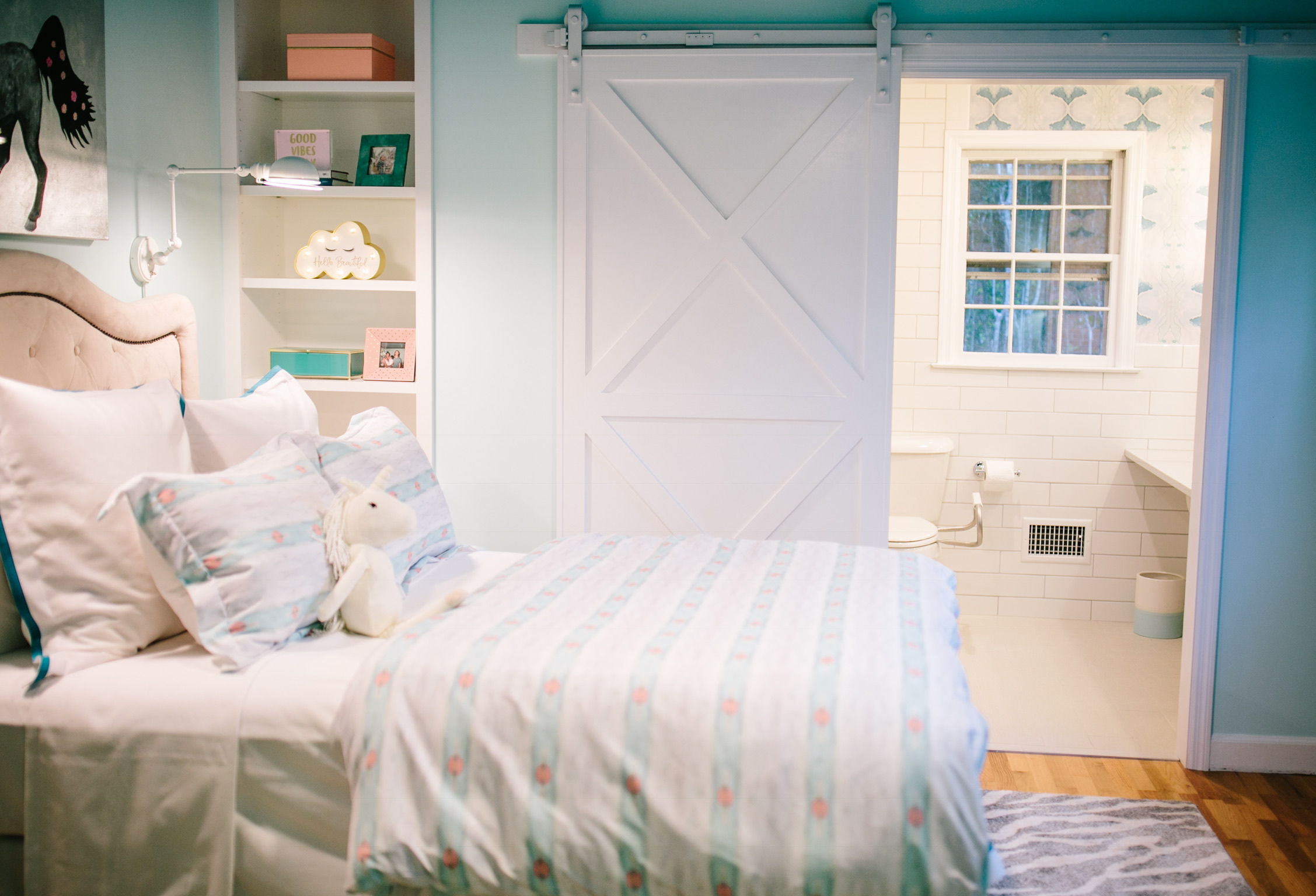 Ava is a smart and independent teenager with spina bifida. Her parents, Jvanete and Matt, purchased their home because it already had some accessible features that would allow Ava to be more independent, including an accessible play room and bathroom on one side of the house. However, Ava’s master bedroom suite needed work. Because Ava’s independence is important to her, we wanted to make sure her bedroom and bathroom suite would work. She needed wider doorways into the bathroom, with a walk-in shower, so she could easily transfer from her wheelchair or walker to a shower seat. She needed better storage for her medical supplies, and a closet that was suited for her height.