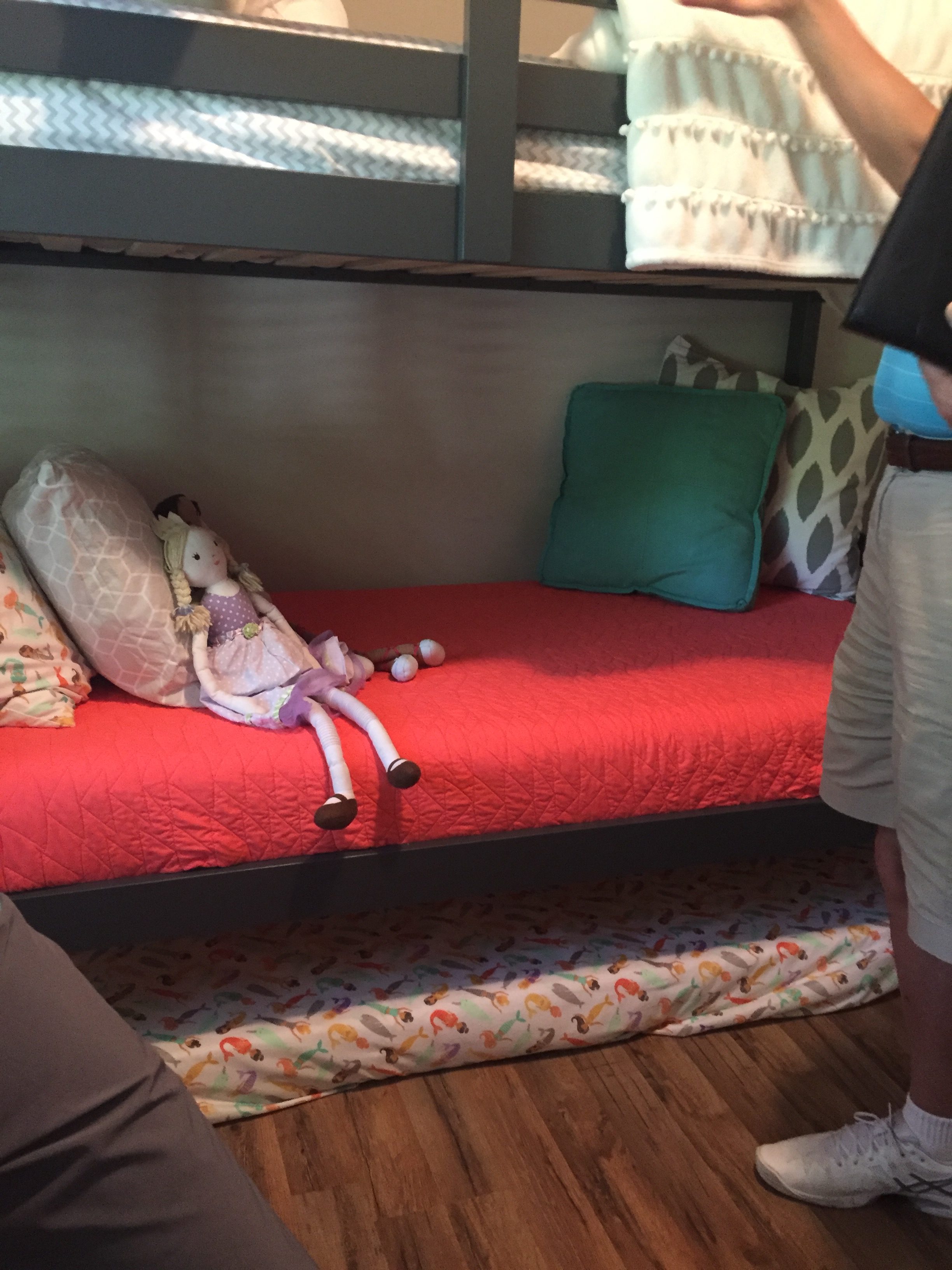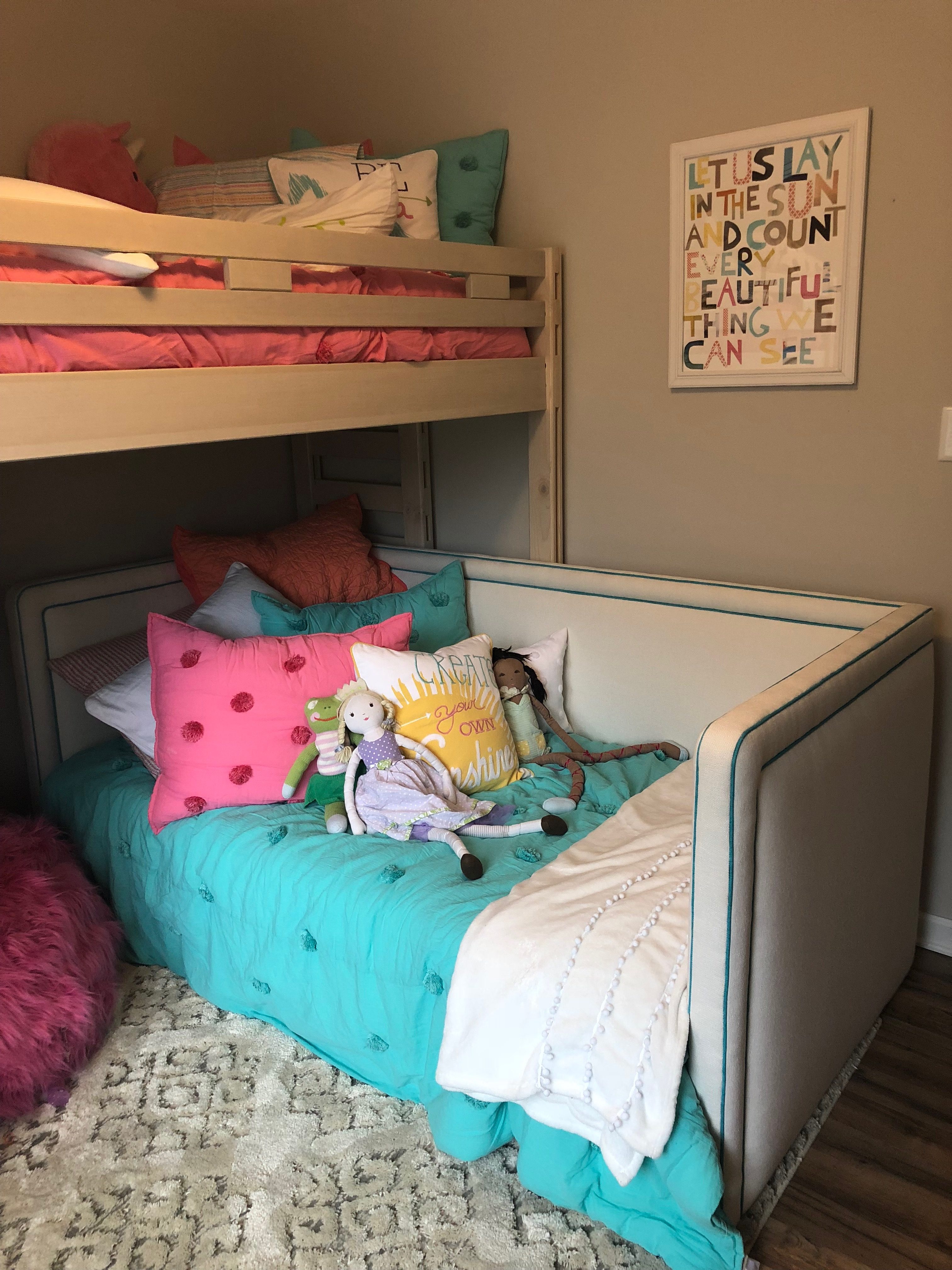 Thanks to the amazing folks at Monteith Construction Company and Live Oak Bank, Welcome Home Angel was able to give Mia everything she needed: a spacious, beautiful, and happy bedroom for her and her sister, plus the biggest, best walk-in shower for the best shower Mia and her mom could want! We also gave Mia her own special custom upholstered bed that keeps her safe at night.