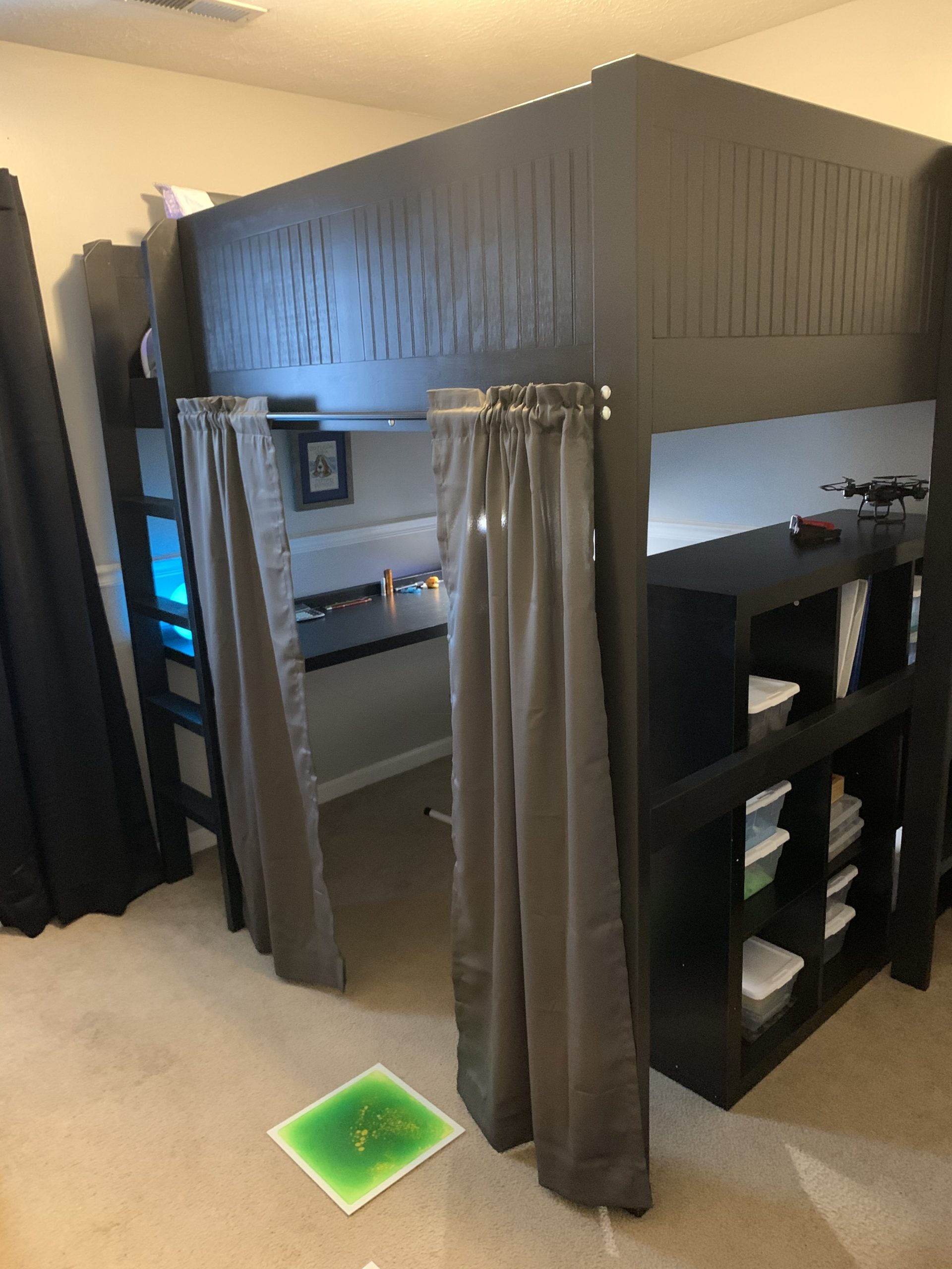 When we first met Payton, he knew exactly what he wanted his room to look like. And boy did he have big dreams! There were a lot of compromises to ensure the utmost safety and functionality of the room, while still trying to bring Payton’s vision to life. Payton had a loft bed that was old and not very sturdy. He had very minimal toys since he enjoys being outside more and climbing on his bed and other things. He loves video games and collecting different kinds of stones and rocks.